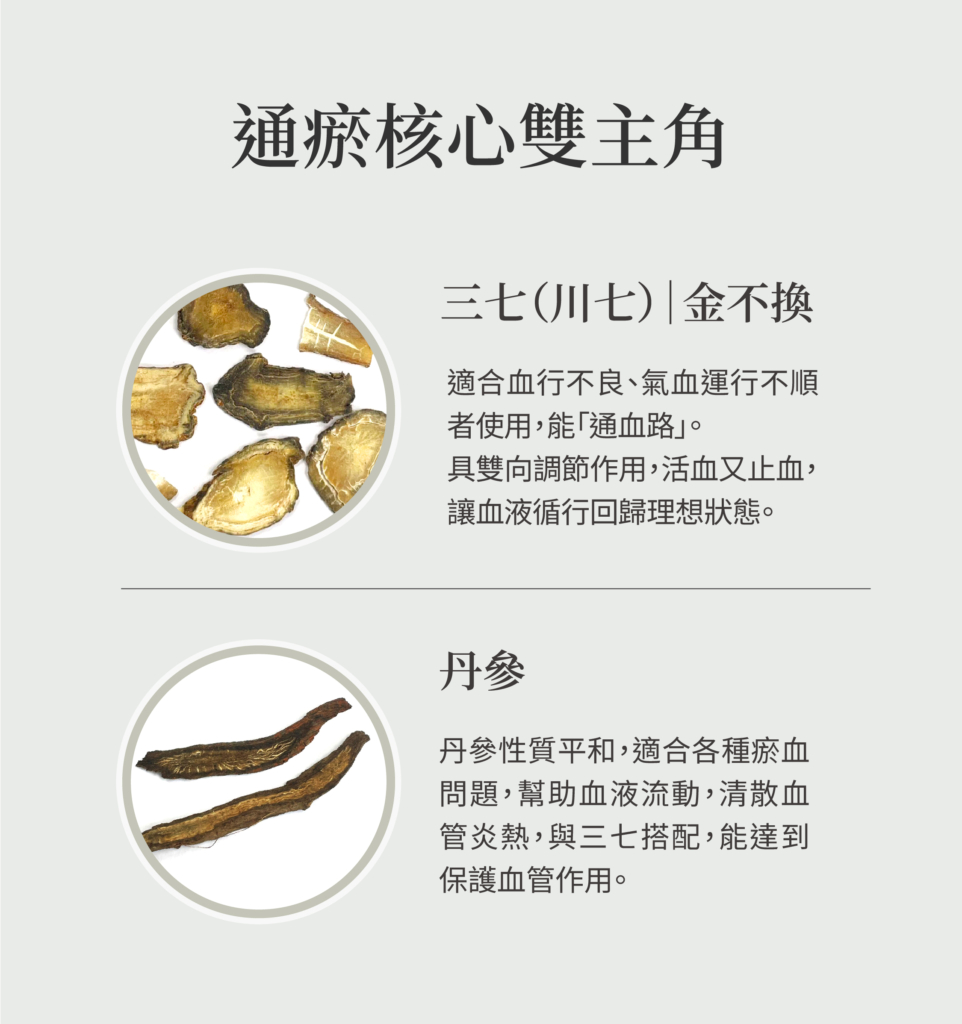 - 川七、丹參:活血化瘀、保護血管