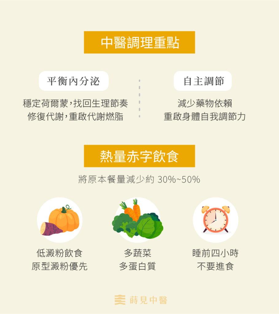 1.平衡內分泌:透過中藥調理穩定荷爾蒙分泌,協助身體找回健康生理節奏,穩定紊亂的代謝,降低身體對醣類的渴望。
